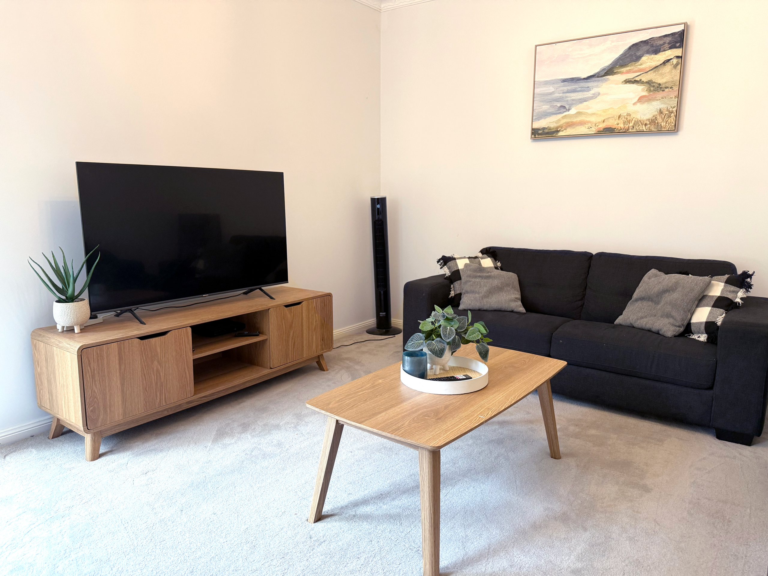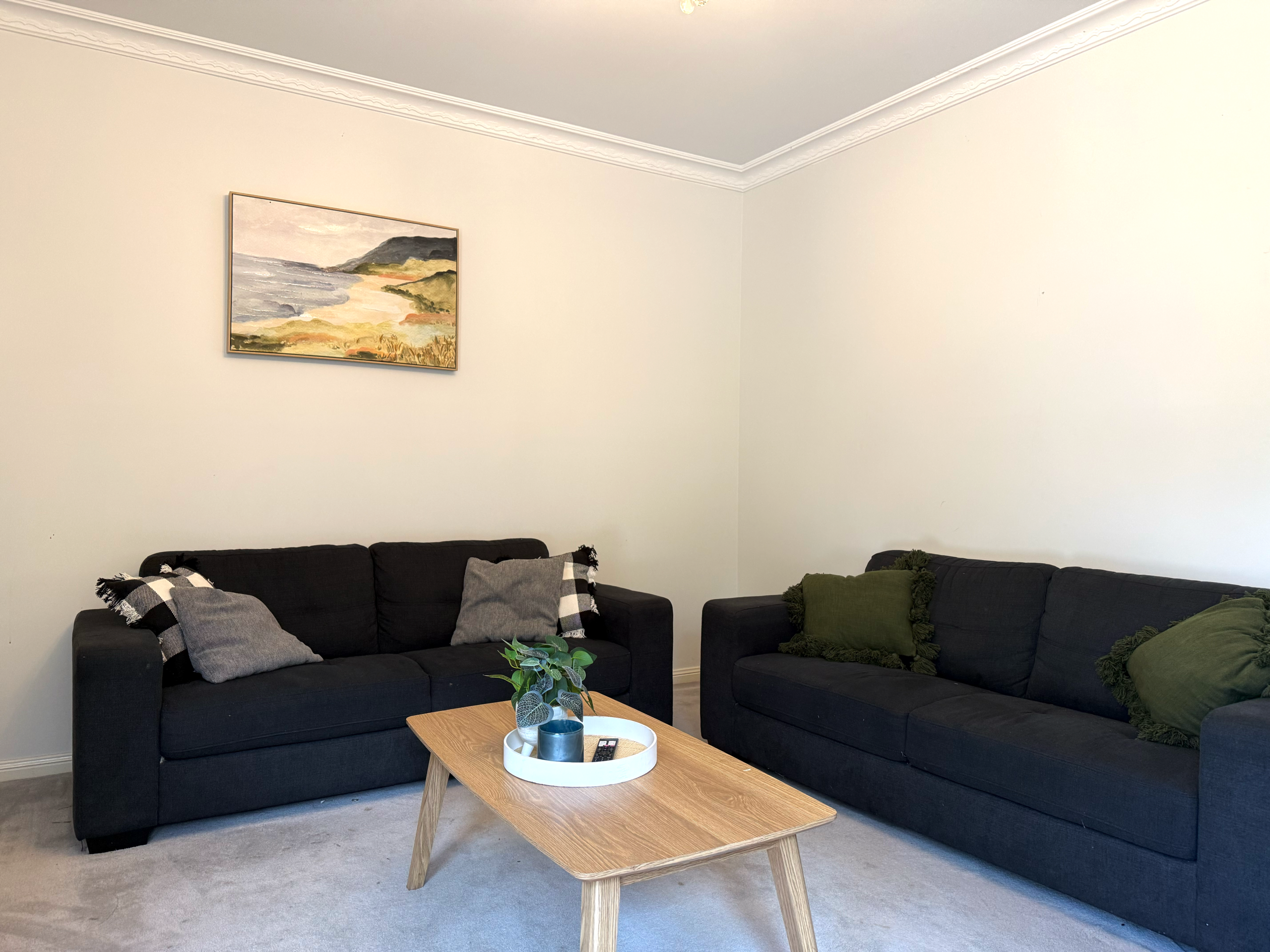 - Shared kitchen and open plan living and dining area